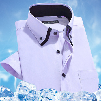 普瑞森新款夏装莫代尔男士免烫短袖衬衣男装韩版双层领修身衬衫潮