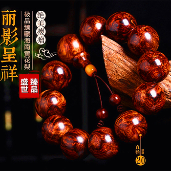 正宗海南黄花梨鬼脸手串2.0 男 水波虎皮纹 海黄油梨佛珠手链 女